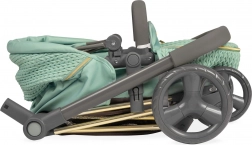 Ten stylowy wózek dla lalek wyróżnia się połączeniem nowoczesnej miętowej tkaniny i ozdobnych detali, w tym złotych elementów. Dzięki przemyślanej konstrukcji z łatwością przekształcisz go z głębokiej gondoli w wersję spacerową i odwrotnie. Wyższa rączka (73 cm) zapewnia wygodne prowadzenie także przedszkolakom.