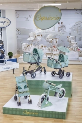Odkryj dziecięcy wózek dla lalek z kolekcji Capriccio 2025 w niepowtarzalnym miętowozielonym kolorze z eleganckimi złotymi detalami. Połączenie tkaniny o splocie przypominającym dzianinę i gładkiego materiału nadaje wózkowi luksusowy wygląd, a lekka rama i niższy uchwyt zapewniają wygodne prowadzenie nawet młodszym dzieciom.