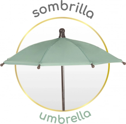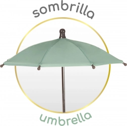 - Parasol o średnicy 42 cm chroni lalkę przed słońcem