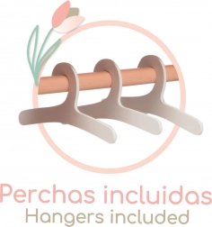 Podaruj dzieciom eleganckie miejsce na ubranka ich lalek. Drewniana szafa z kolekcji TULIPE w ciepłych łososiowych pastelowych odcieniach z delikatnym kwiatowym wzorem doskonale wpasuje się w każdy pokoik. Dzięki drążkowi i trzem solidnym wieszakom małe stylistki mają wszystko pod ręką i uporządkowane.