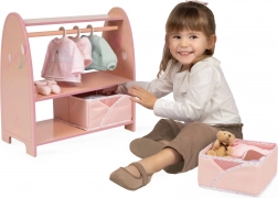 Drążek z 3 drewnianymi wieszakami oraz górną półką ułatwia wieszanie i sortowanie ubranek o długości ok. 19 cm.