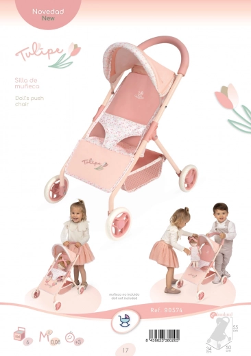 Elegancka spacerówka dla lalek z kolekcji Tulipe zachwyca hiszpańskim designem, precyzyjnym wykonaniem i łatwą obsługą. Lekka konstrukcja z trzypunktowym pasem, praktycznym koszem na akcesoria oraz wysokością rączki 55 cm jest idealna dla młodszych dzieci. Stylowy kwiatowy motyw w ciepłych pastelowych odcieniach dopełni każdą dziecięcą zabawę.