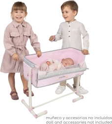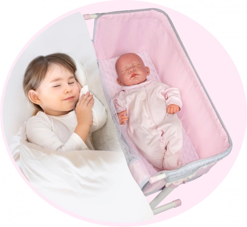 Eleganckie noworodkowe łóżeczko dla lalek z serii SOPHIE zachwyca delikatnym designem i praktyczną funkcją wspólnego spania. Dzięki opuszczanemu bokowi, regulowanym nogom oraz możliwości ustawienia wysokości posłania z łatwością dosuniesz je do dziecięcego łóżka. Lekka obsługa, solidne wykonanie oraz subtelny róż z szarymi i białymi detalami tworzą magiczne miejsce dla każdej lalki.