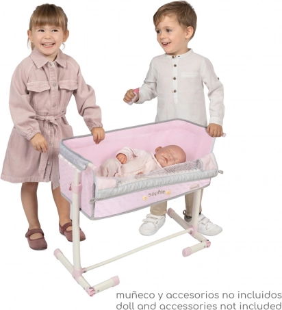 Łóżeczko dla lalek z kolekcji SOPHIE oferuje realistyczne wrażenia z opieki nad niemowlęciem. Dzięki funkcji co-sleeping mała mama może mieć swoją lalkę w nocy tuż obok – wystarczy opuścić boczną ściankę i bezpiecznie dosunąć łóżeczko do łóżka. Regulacja wysokości w trzech poziomach oraz ruchome nogi zapewniają idealne dopasowanie.