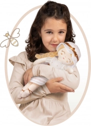 Dzięki swojemu rozmiarowi i niskiej wadze świetnie leży w dłoniach nawet najmłodszych dzieci, a miękkie wypełnienie zapewnia komfort podczas przytulania i snu. Pielęgnacja jest łatwa – lalkę można prać ręcznie w 30 °C, dzięki czemu pozostaje długo piękna i czysta.