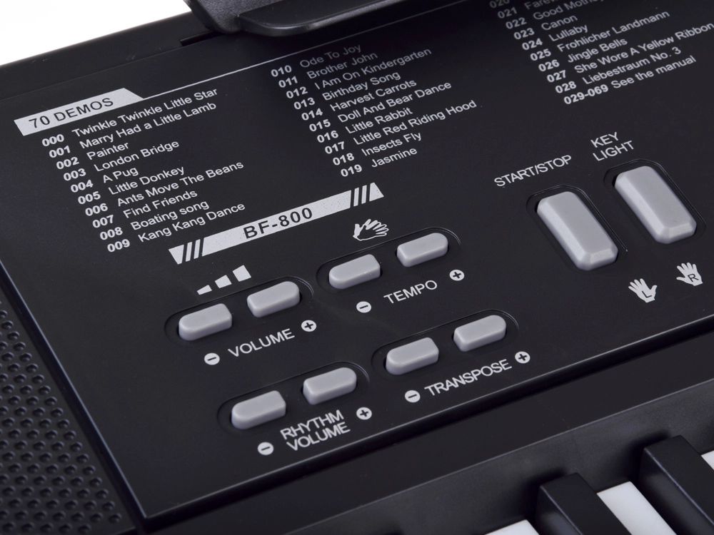 Do wyboru masz 200 brzmień (fortepiany, organy, smyczki, dęte oraz nowoczesne syntezatory) i 200 stylów akompaniamentu od popu i rocka po jazz i disco. Nie brakuje 70 utworów demo dla inspiracji i nauki, funkcji Record/Play do nagrywania własnych pomysłów ani Numeric Pad do szybkiego wprowadzania numerów.