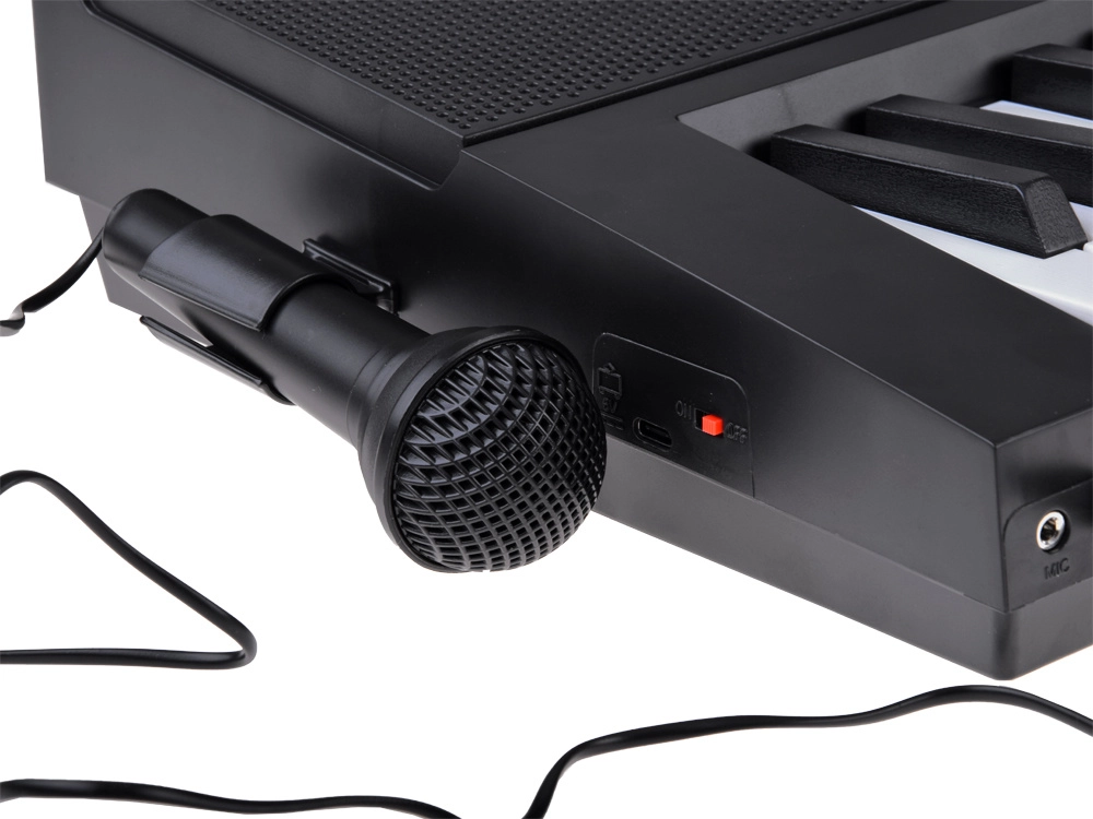 Dołączony mikrofon i wejście mikrofonowe umożliwiają akompaniament wokalny i mówione komentarze. Świetne do domowych występów i nagrywania.