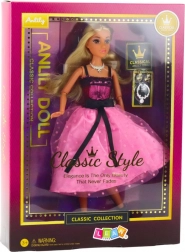 Lalka ANLILY w różowo‑czarnej sukni z dodatkami