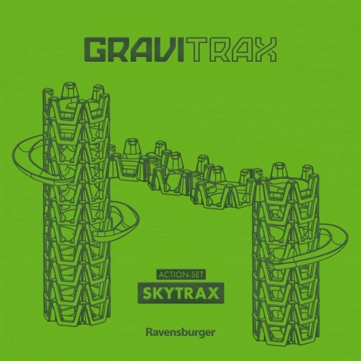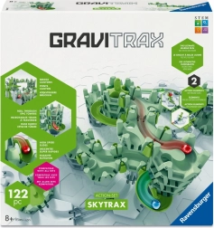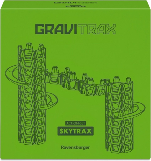 GRAVITRAX Skytrax M przenosi kulkowe tory na wyższy poziom – dosłownie. Dzięki nowym łącznikom i elementom mostowym kulki mogą poruszać się także ponad planszą, co otwiera zupełnie nowe możliwości projektowania. Buduj w górę, łącz poziomy jeden nad drugim i obserwuj, jak kulki spadają, przyspieszają i pędzą przez wiele pięter.