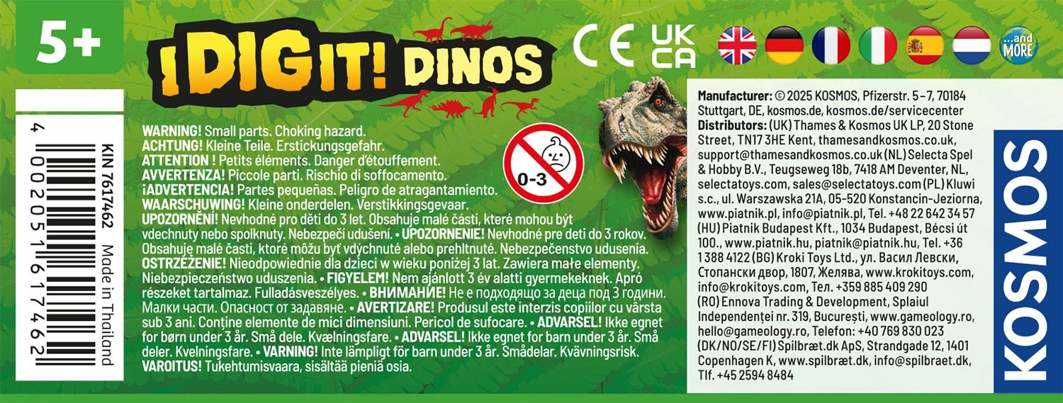 Odkryj w sobie paleontologa z zestawem Kosmos I Dig It! – mały blok skrywa figurkę dinozaura o wielkości ok. 7 cm. Idealna zabawa dla dzieci, rozwijająca ciekawość i motorykę małą. W zestawie proste narzędzia do wykopywania oraz szczegółowa minifigurka do kolekcjonowania i zabawy. Wciągające wykopaliska, realistyczna figurka i świetny prezent dla małych odkrywców.