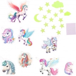 Podaruj dzieciom bajkowy świat, który ożywa po zgaszeniu światła. Zestaw zawiera kolorowe jednorożce oraz delikatnie zielono świecące dekoracje, które zmienią każdy pokój w przytulne miejsce do zabawy i snu. Bezpieczne, nietoksyczne materiały spełniają europejskie normy jakości.