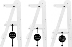 - 3 poziomy wysokości platformy (29,4 / 36,9 / 44,4 cm od podłogi) dla idealnego dopasowania do wzrostu dziecka.