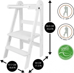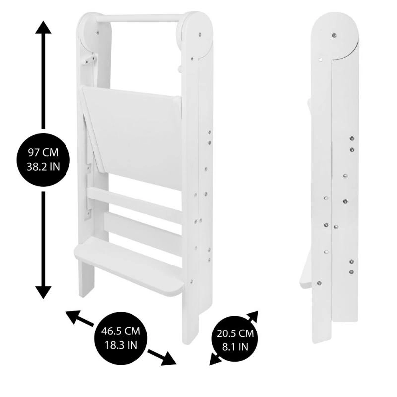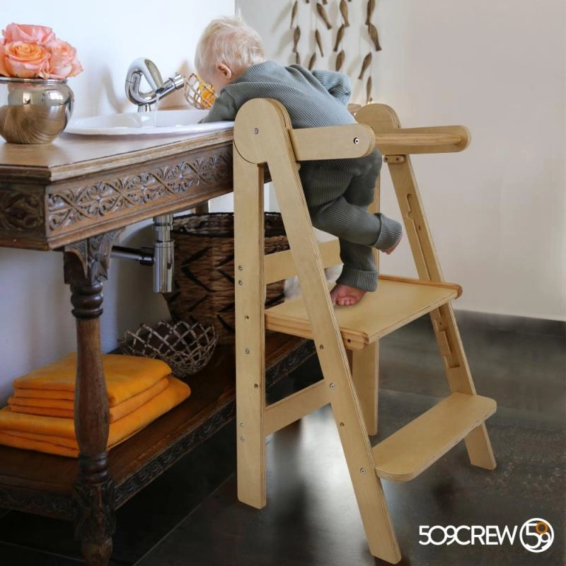 Składana wieża edukacyjna LOFTY pomaga dzieciom angażować się w codzienne czynności – od gotowania po mycie zębów. Wykonana z wysokiej jakości sklejki o potwierdzonym bezpieczeństwie, bez formaldehydu, spełnia wymagania nowoczesnego domu. Dzięki przemyślanej konstrukcji łatwo ją przenosić i przechowywać.