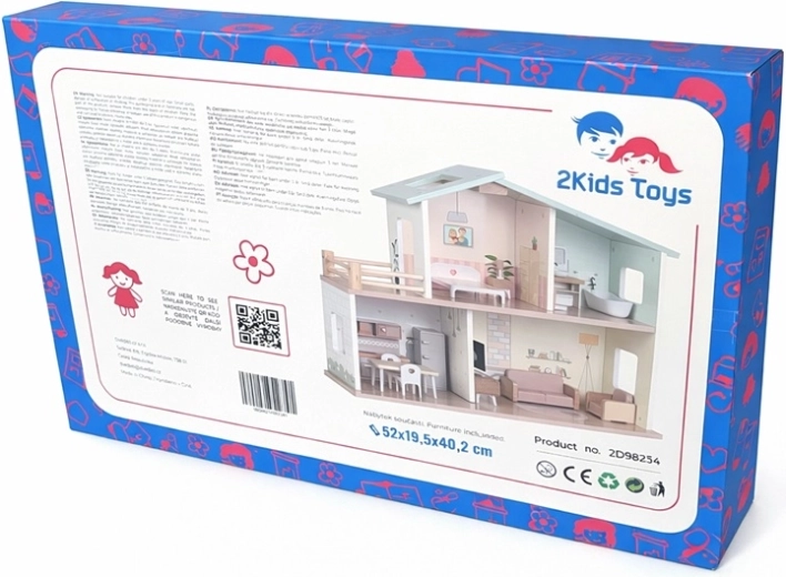 Odkryj piękny drewniany domek dla lalek Aniczka od 2Kids Toys z dwoma piętrami, balkonem i w pełni wyposażonymi pomieszczeniami. Dzięki 16 elementom mebli i akcesoriów dzieci spędzą długie godziny na kreatywnej zabawie w odgrywanie ról, rozwijając wyobraźnię i umiejętności społeczne. Wysokiej jakości drewniane wykonanie, subtelne kolory i stabilna konstrukcja czynią go uroczym dodatkiem do dziecięcego pokoju. W zestawie znajduje się instrukcja montażu; domek dostarczany jest w stanie rozłożonym. Odpowiedni od 3 lat.