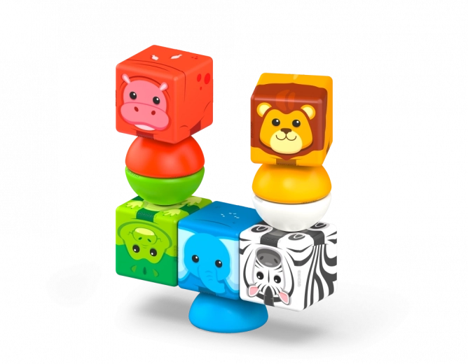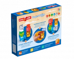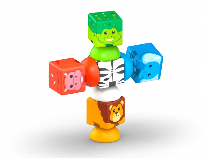 Zestaw zawiera 5 magnetycznych sześcianów z motywami zwierząt safari oraz 5 kolorowych magnetycznych półkul. Elementy są solidne, przyjemne w dotyku i zaprojektowane z myślą o bezpiecznej zabawie już od 2 lat. Zabawka jest w pełni kompatybilna z pozostałymi zestawami linii Magicube, dzięki czemu świat wyobraźni może stale się rozrastać.