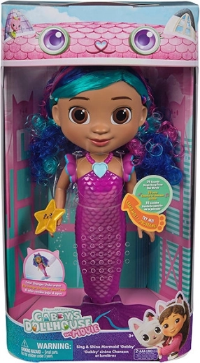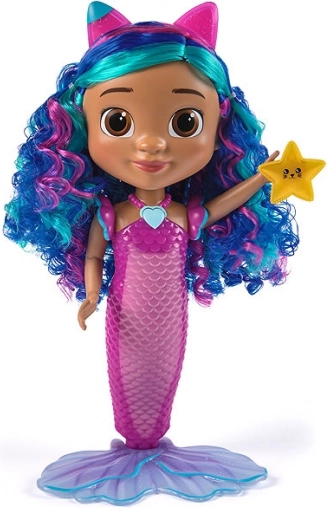 Syrenka Gabina z filmu Gabinin magiczny domek łączy światła, dźwięki i wodne efekty. Naciśnij serduszkowy naszyjnik i ciesz się efektami świetlnymi oraz 14 autentycznymi dźwiękami i kwestiami. Ogon lalki dodatkowo zmienia kolor w ciepłej wodzie, więc każda kąpiel i zabawa w wodzie pełna jest niespodzianek.
