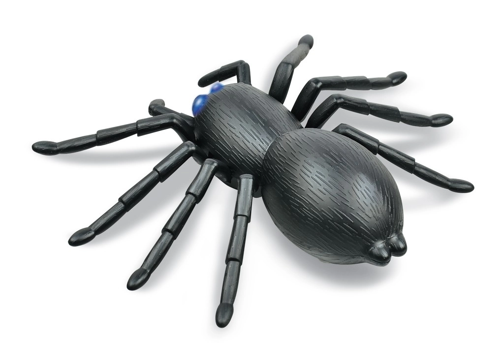 Detaliczie ukształtowane ciało, wieloprzegubowe nogi i świecące oczy nadają pająkowi wiarygodny efekt, który zainteresuje dzieci i dorosłych.