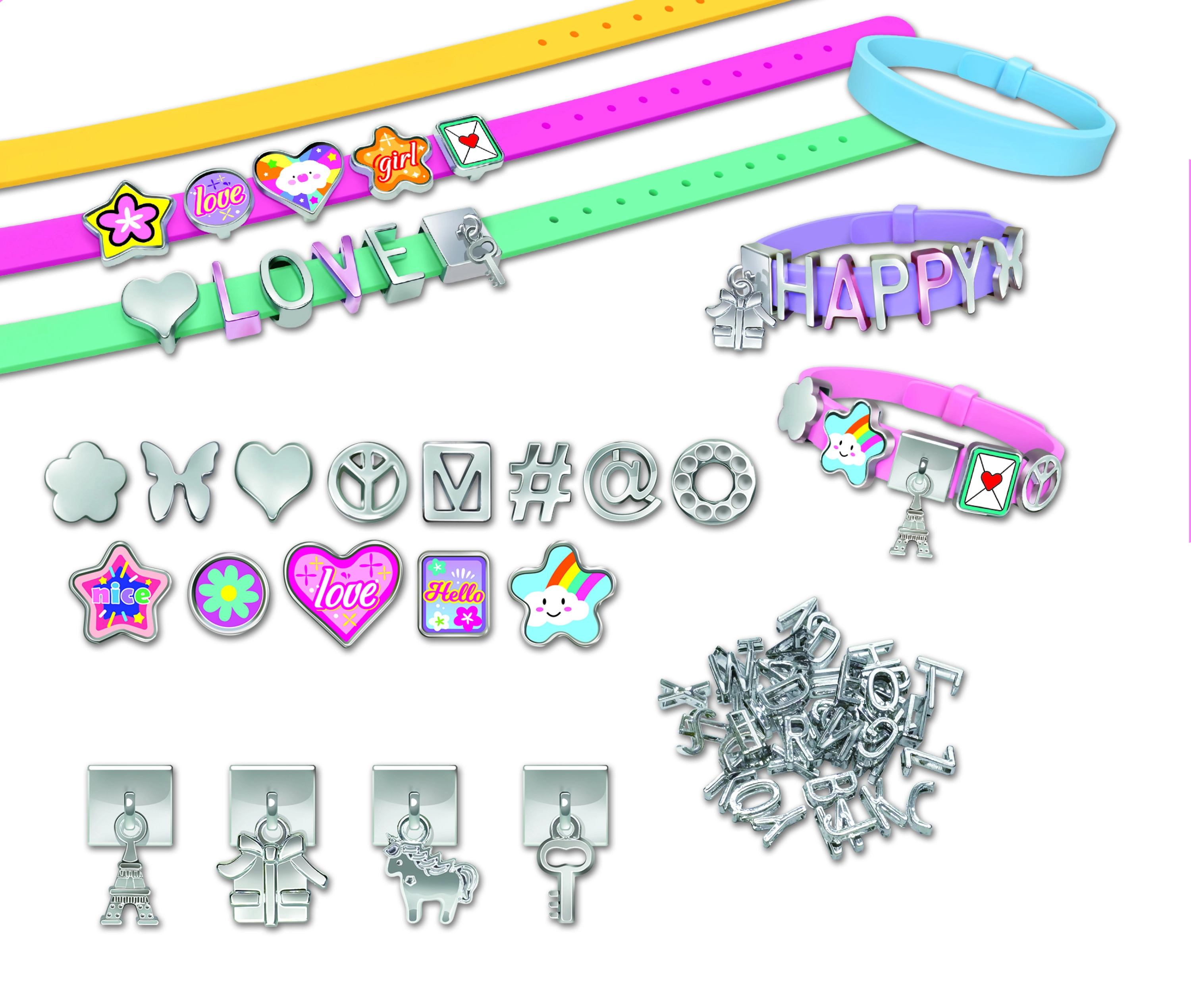 Kreatywny zestaw dla małych i dużych miłośniczek biżuterii, dzięki któremu z łatwością stworzysz oryginalne bransoletki z imionami lub wiadomościami. W opakowaniu znajdują się 4 regulowane bransoletki, zestaw koralików z literami oraz stylowe zawieszki dla wyjątkowego wyglądu.