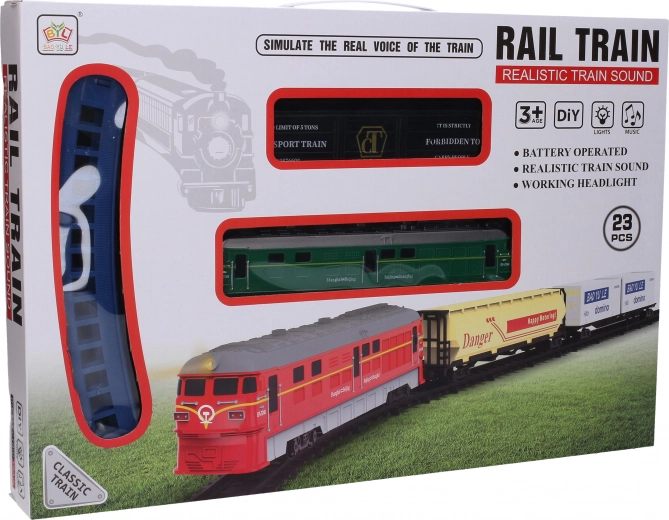 Ciesz się zabawą z kompletnym torem kolejowym z efektami o wymiarach 106 × 106 cm, który oferuje efekty świetlne i dźwiękowe. Idealny do dziecięcej zabawy i rozwijania wyobraźni. Zasilanie zapewniają 2× baterie AA (nie są dołączone do zestawu).