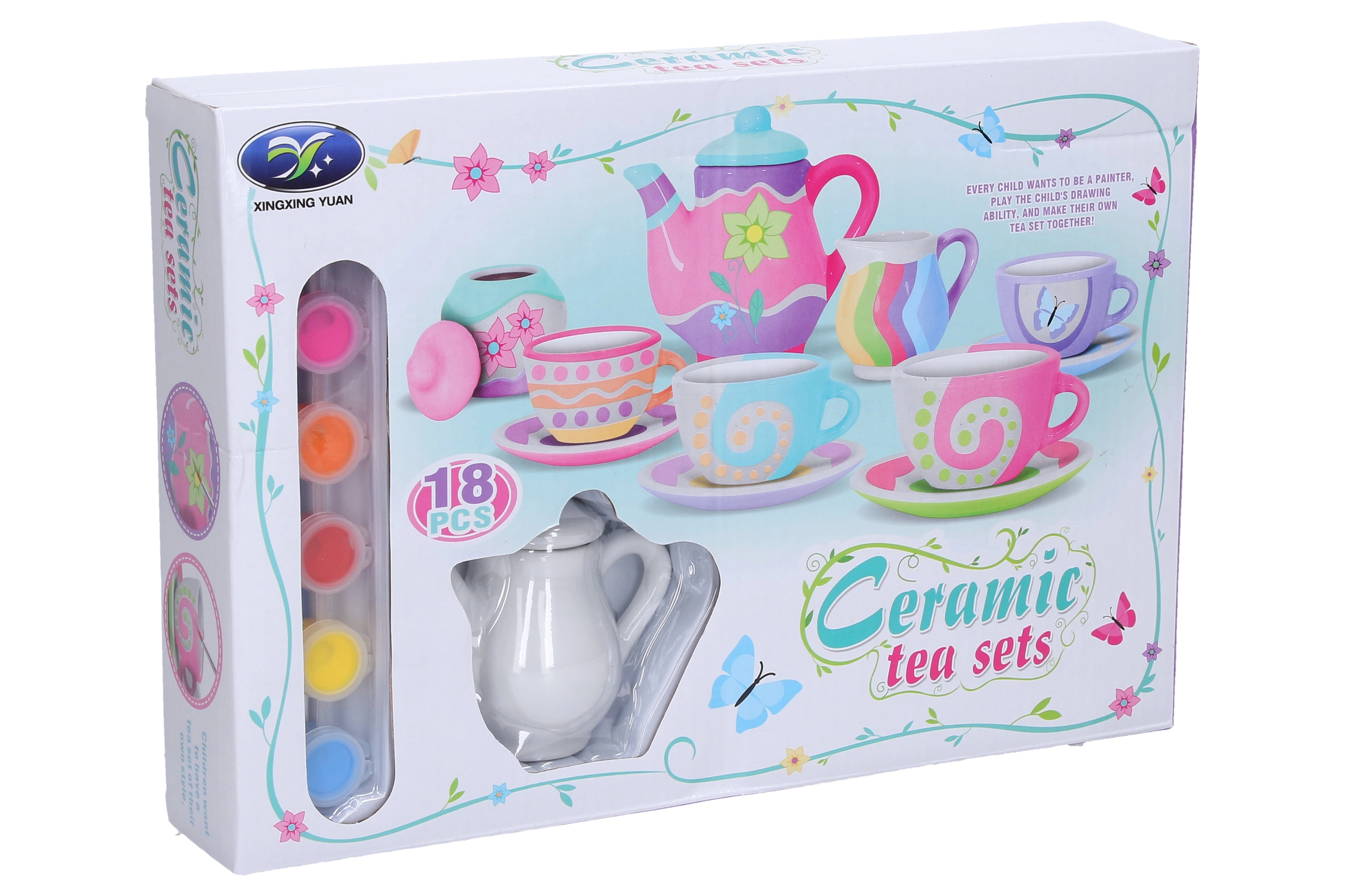 Odkryj zabawny sposób tworzenia z tym kreatywnym zestawem do malowania serwisu do herbaty. Zestaw zawiera wszystko, czego potrzebujesz: 6 farb, pędzelek, 4 filiżanki ze spodkami, dzbanek i cukiernicę. Idealny do rozwijania kreatywności, motoryki małej oraz jako oryginalny prezent.