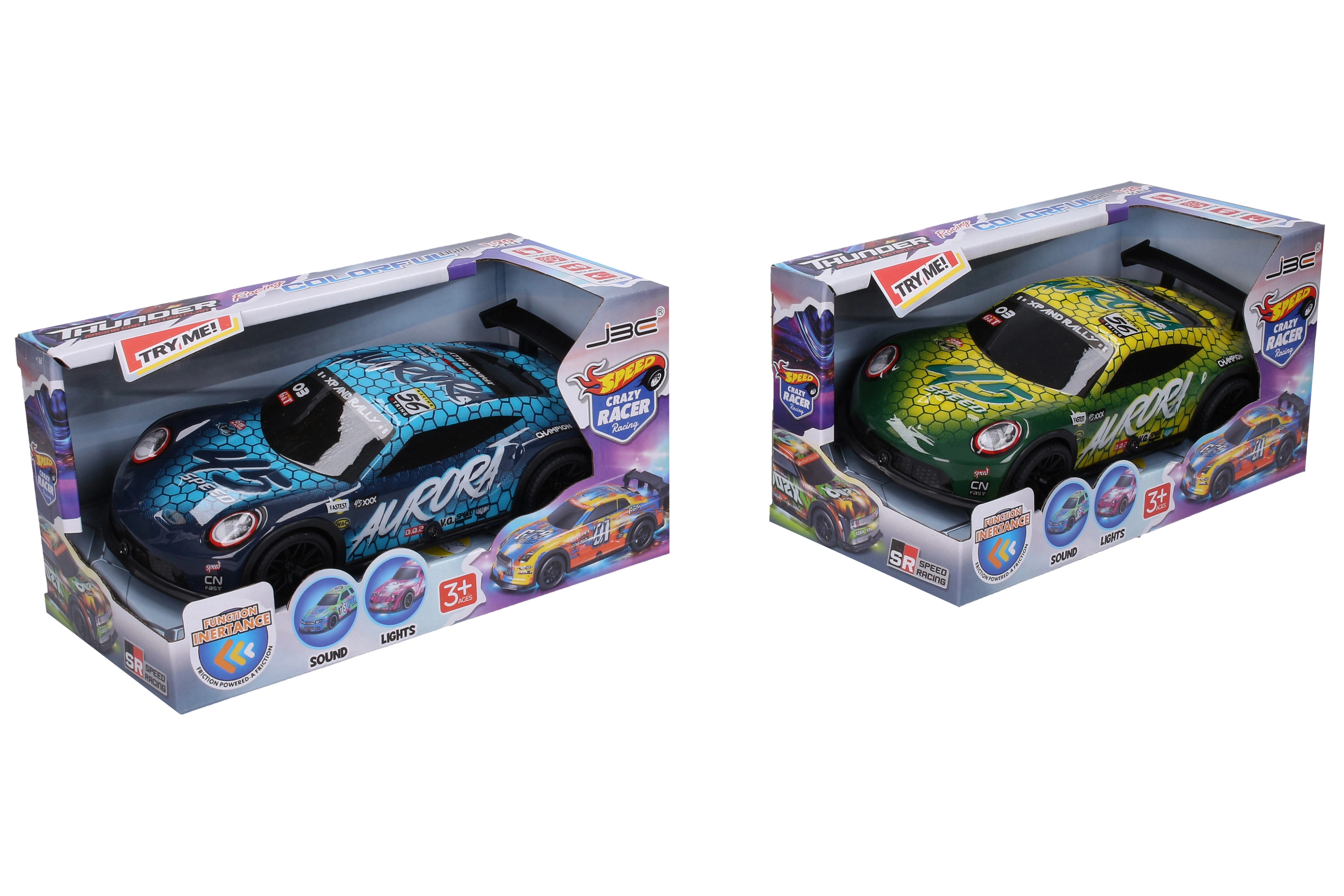Ten samochód wyścigowy zapewni dzieciom mnóstwo akcji i zabawy. Dzięki napędowi ciernemu wystarczy samochód pociągnąć do tyłu i puścić – ruszy do przodu bez konieczności użycia silnika na baterie. Efekty świetlne i dźwiękowe aktywują się prostym naciśnięciem maski, co wspiera interaktywną zabawę.