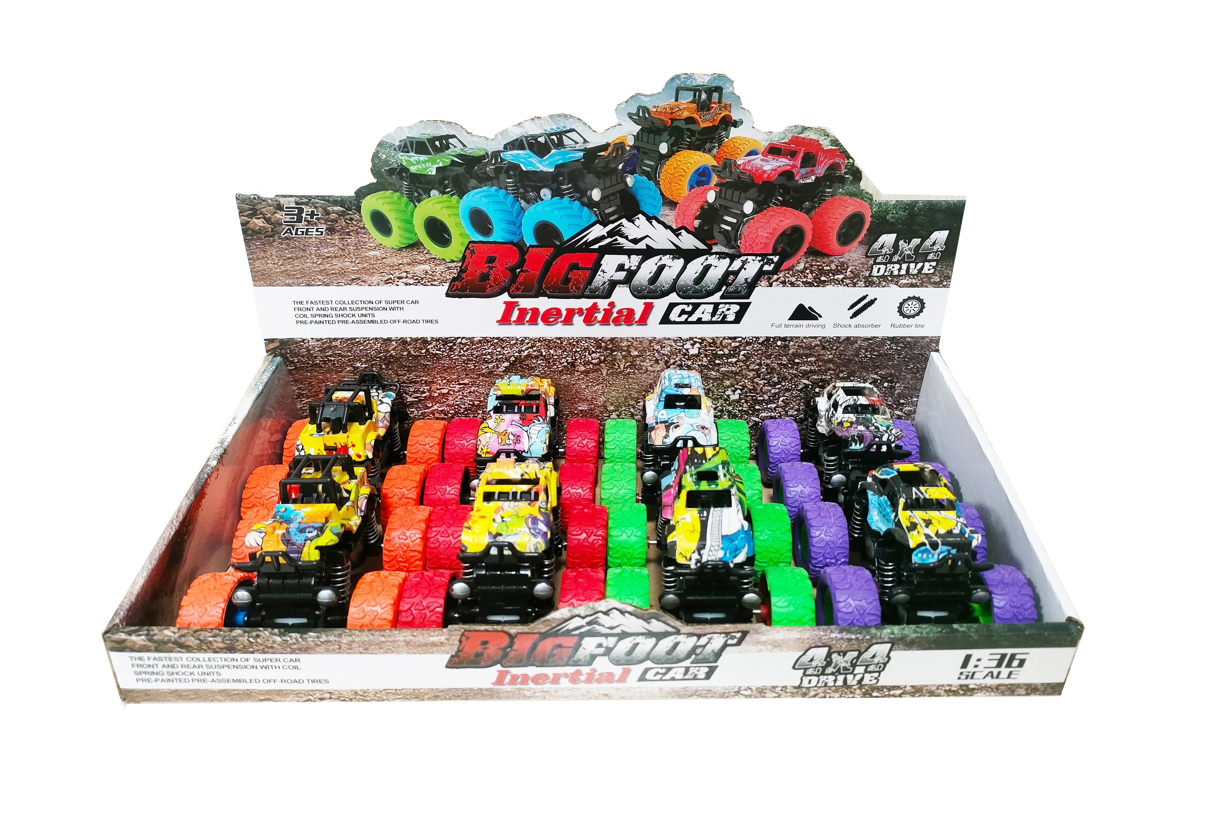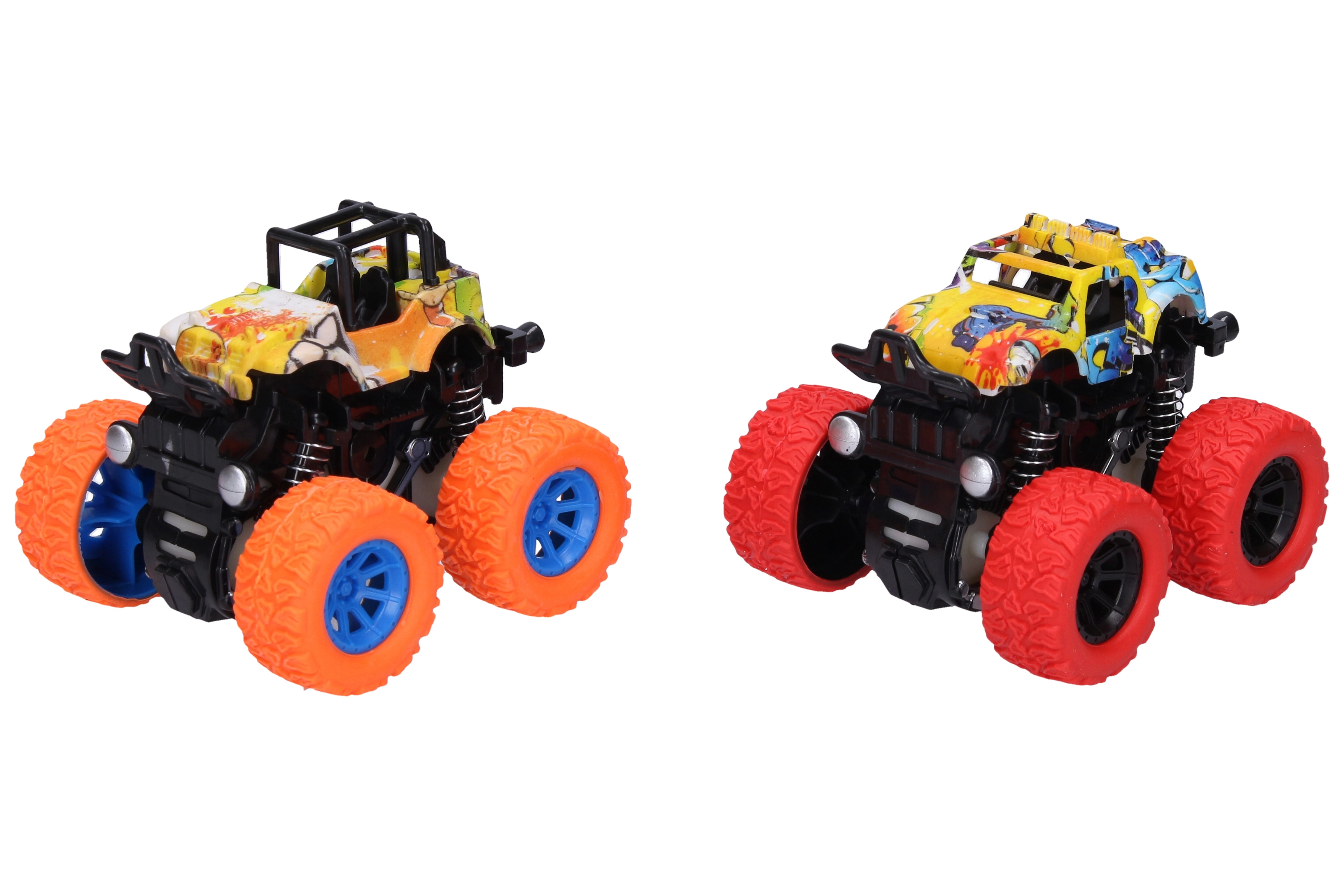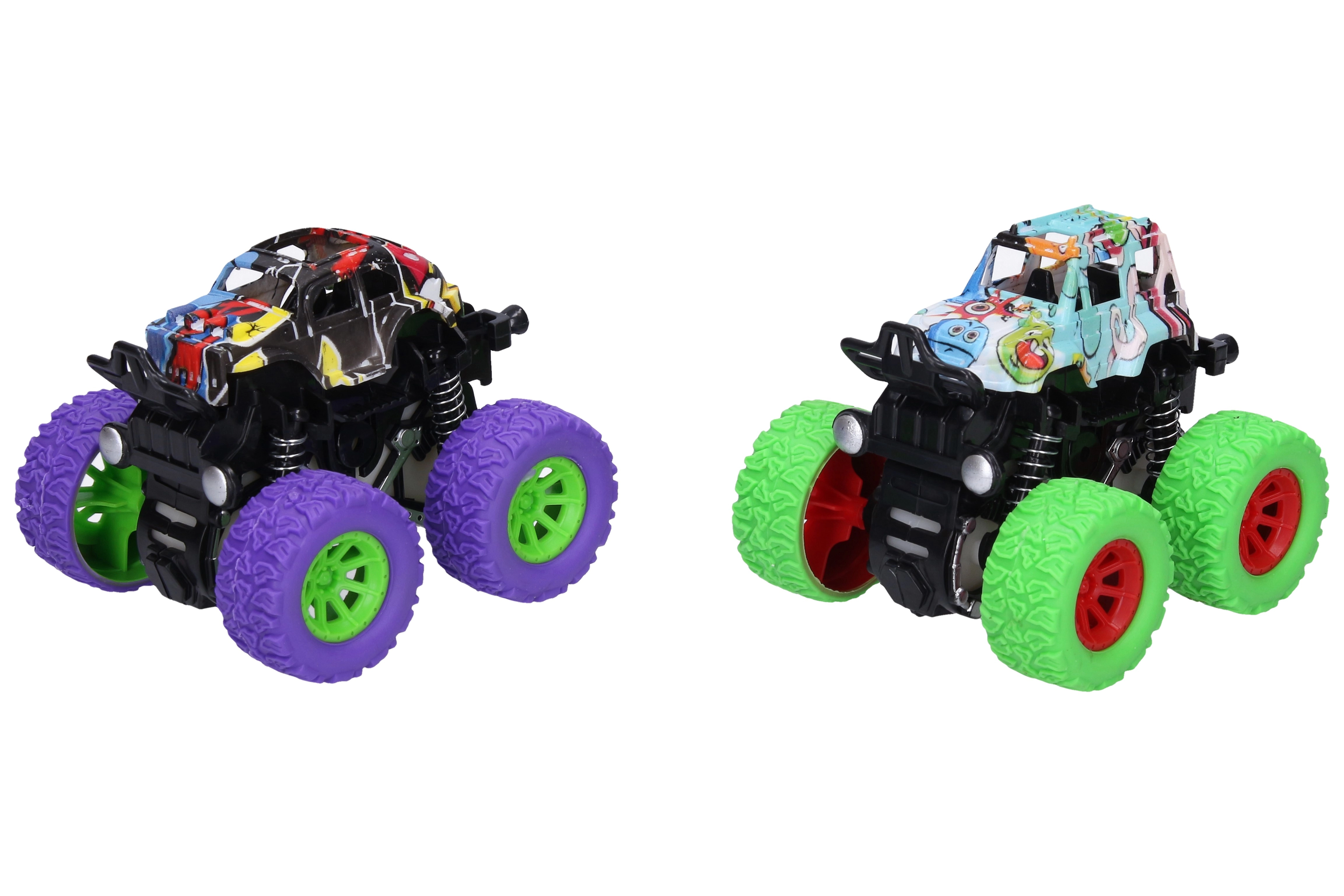 Odkryj zabawę na pełnych obrotach z tymi mini monster truckami na napęd bezwładnościowy! Kompaktowe wymiary i wyrazisty graffiti design sprawiają, że to świetny wybór dla dzieci, które kochają akcję. Dzięki dużym terenowym kołom i wytrzymałej konstrukcji poradzą sobie z drobnymi przeszkodami i zapewnią mnóstwo frajdy w domu i na zewnątrz.