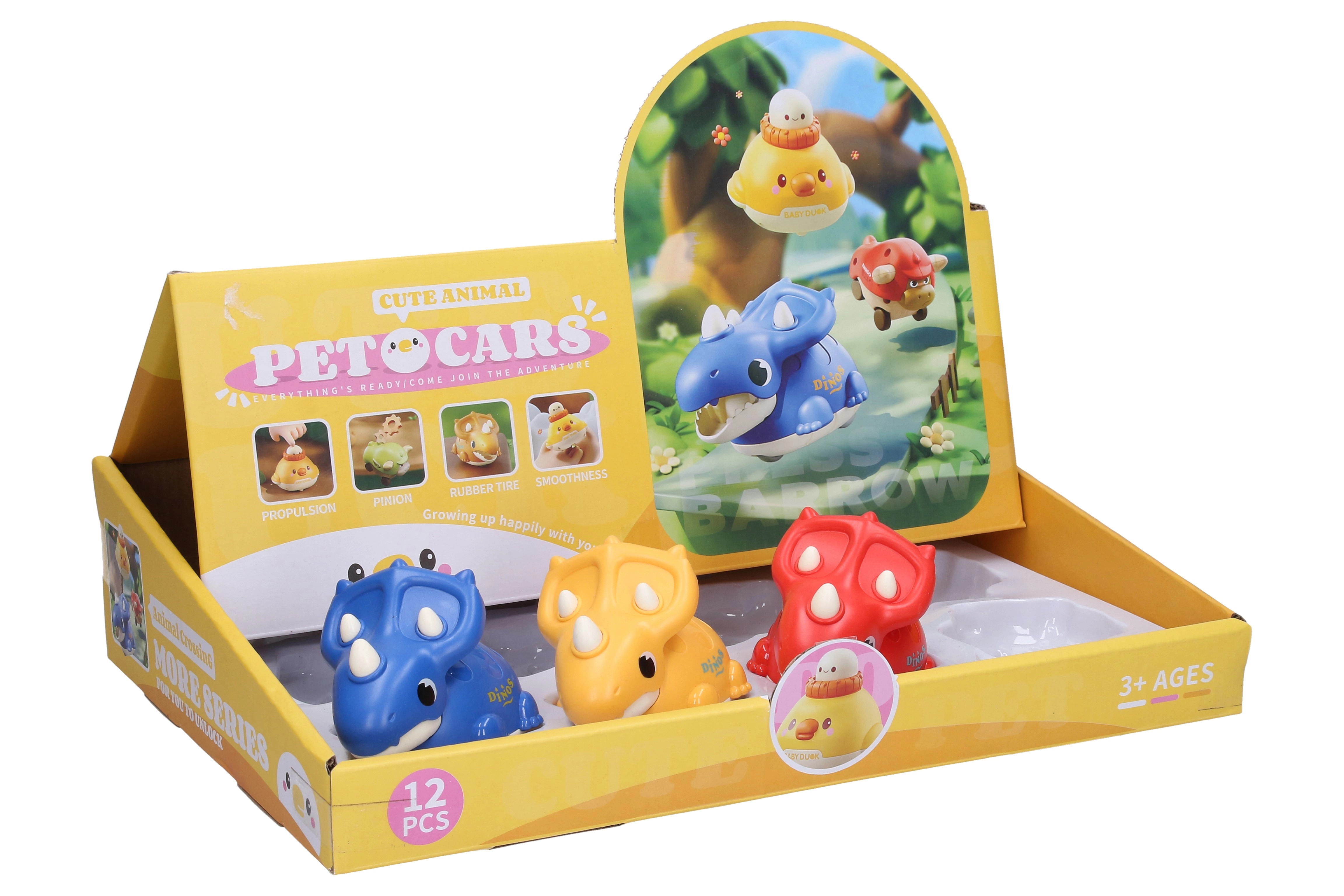 Zabawny jeżdżący dinozaur 9 cm ucieszy każde dziecko. Wystarczy nacisnąć głowę, dinozaur się nakręci i sam ruszy do przodu. Dostępny w różnych wariantach kolorystycznych, idealny jako mały prezent lub do kolekcji.
