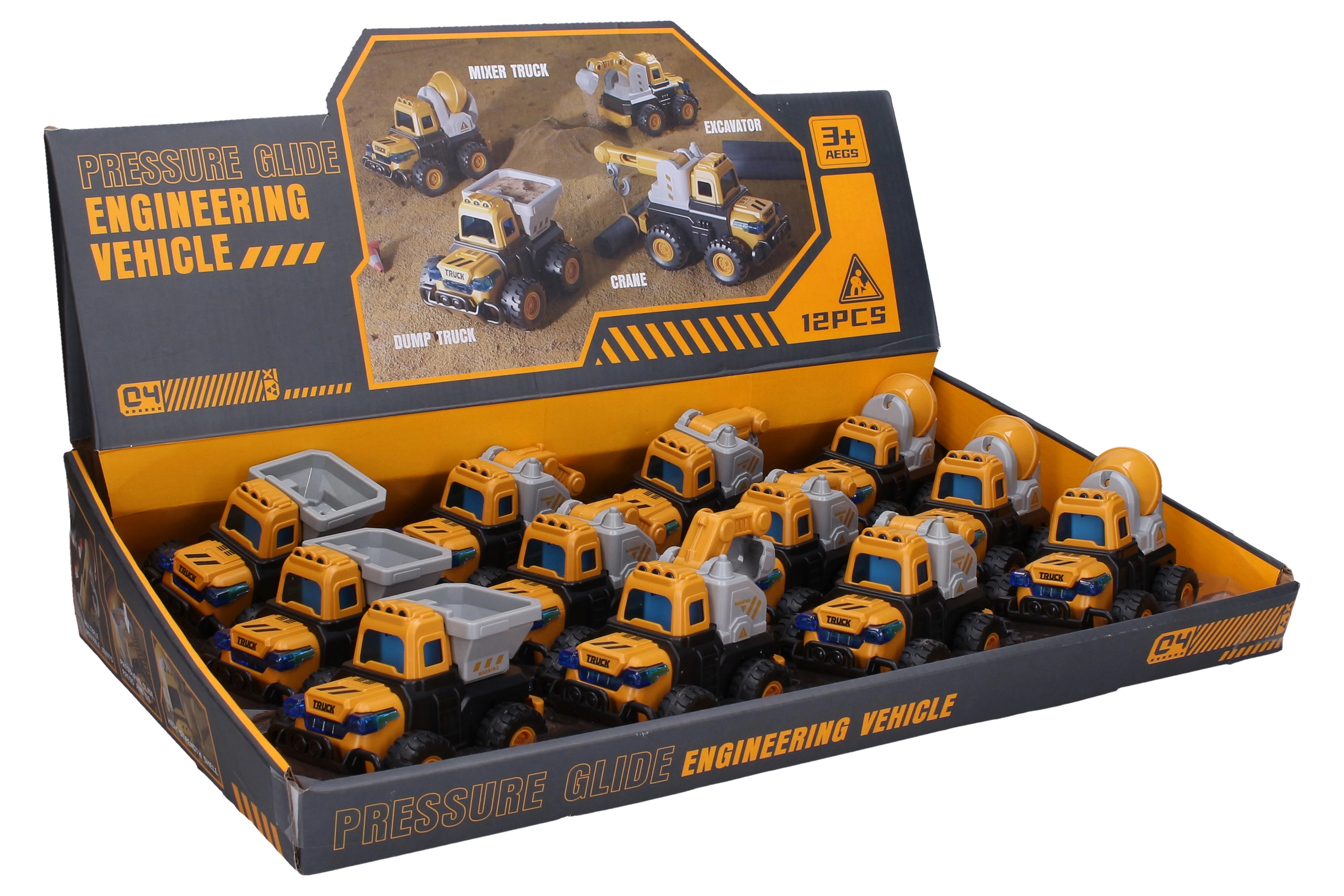 Pojazdy dostarczane są w display boxie po 12 sztuk, idealne na prezent, do kolekcjonowania lub wyposażenia kącika dziecięcego. Trwałe materiały i prosta obsługa zapewniają bezpieczną i przyjemną zabawę w domu i w podróży.