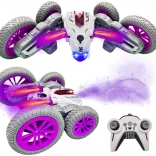 Superszybkie kaskaderskie auto RC dla dzieci i dorosłych oferuje obrót o 360°, jazdę dwustronną, drift oraz imponujący efekt podświetlanej mgiełki wodnej. Dzięki gumowym oponom, wytrzymałej konstrukcji i oświetleniu LED wykonuje triki na różnych nawierzchniach i zapewnia godziny dynamicznej zabawy.