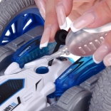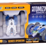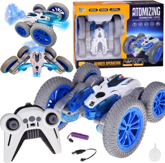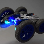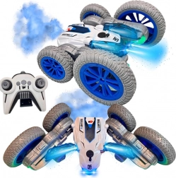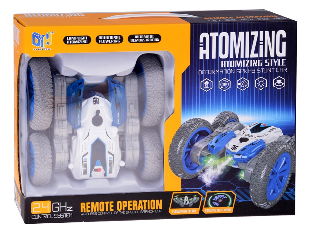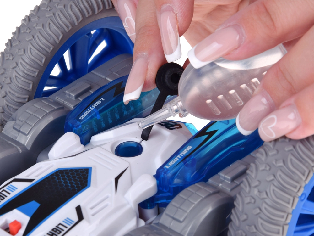 To kaskaderskie auto RC stworzono do adrenaliny w domu i na gładkich nawierzchniach na zewnątrz. Dzięki dużym kołom i zwinnej konstrukcji wykonuje przewroty, jeździ „na brzuchu i na plecach”, szybko zmienia kierunek i imponuje rotacjami 360°. Efekt podświetlanej wodnej pary oraz dwukolorowe diody LED nadają jeździe efektowny wygląd.