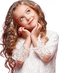 Ten zabawny i bezpieczny zestaw rozwija kreatywność oraz sprawność manualną. Dzieci mogą w kilka sekund odmienić swoją fryzurę, dodatki lub ulubione przedmioty (torebkę, telefon, okulary), tworząc oryginalne, błyszczące ozdoby. Aplikator został zaprojektowany do szybkiej i łatwej aplikacji bez bałaganu.