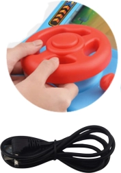 - Dynamiczne wrażenia wyścigowe dla dzieci – kierownica, dźwignia i panel sterowania