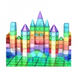 Ta magnetyczna układanka łączy zabawę i edukację w jednym. Dzięki solidnym magnetycznym połączeniom dzieci z łatwością tworzą stabilne konstrukcje 2D i 3D — od prostych daszków po dopracowane zamki i domy. Przezroczyste, intensywnie kolorowe elementy pobudzają wyobraźnię i zmysł estetyczny.