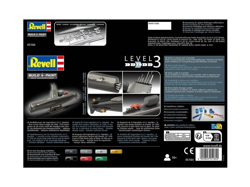 Zbuduj kultową łódź podwodną U.S.S. Nautilus dzięki temu wysokiej jakości plastikowemu modelowi w skali 1:305. Zestaw przeznaczony jest do samodzielnego sklejenia i pomalowania, co daje możliwość dopracowania każdego detalu według własnych upodobań.