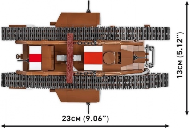 Ten precyzyjnie wykonany model legendarnego brytyjskiego czołgu MARK V (Male) powstał na podstawie autentycznego egzemplarza muzealnego nr 9199 z The Tank Museum w Bovington. Dzięki skali 1:35 doskonale pasuje do figurek i innych modeli COBI. Trwałe nadruki bez naklejek, funkcjonalny napęd gąsienicowy oraz dopracowane detale czynią z niego atrakcyjny element kolekcji.