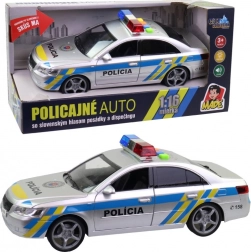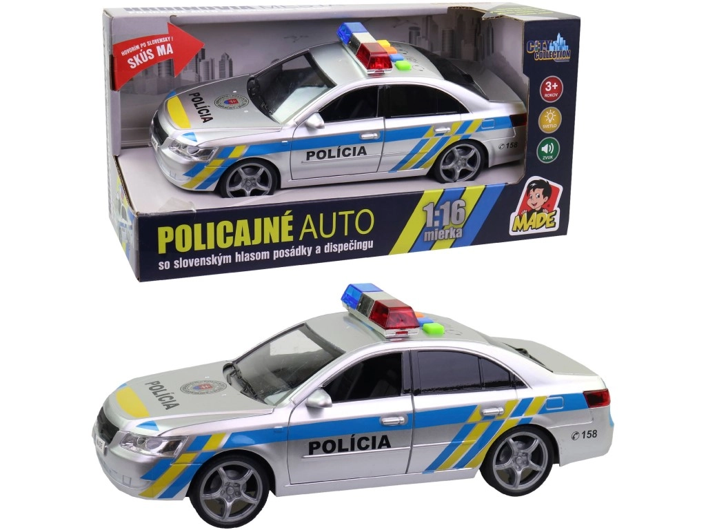 Realistyczny radiowóz policyjny w słowackim wzornictwie ze słowackimi komunikatami głosowymi załogi i dyspozytorni oraz działającym świetlnym sygnałem. Oferuje efekty dźwiękowe, autentyczne meldunki z akcji i kompaktowy rozmiar idealny do zabawy w domu i na zewnątrz.