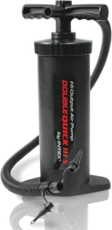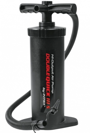 Ręczna pompka DOUBLE QUICK III S Intex to ręczna pompka z wężem do szybkiego pompowania i wypompowywania basenów, materacy, leżanek, piłek czy zabawek dla dzieci. Podwójne działanie pozwala pompować zarówno przy ruchu w górę, jak i w dół. Aby napompować lub wypuścić powietrze, wystarczy zmienić kierunek przepływu powietrza. Pompka zapewnia wysoki przepływ powietrza dla szybszego pompowania.