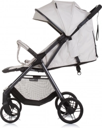Praktyczne rozwiązania obejmują szybko wypinane, amortyzowane koła dla płynnej jazdy, tylny łączony hamulec dla bezpiecznego zatrzymania oraz odpinaną barierkę ułatwiającą sadzanie dziecka. Do tego duży kosz na niezbędne akcesoria i siateczki dla lepszej cyrkulacji powietrza. Wózek spełnia europejskie normy bezpieczeństwa EN1888-1 i EN1888-2.