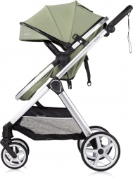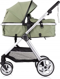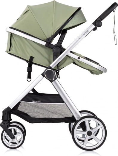 Chipolino Vista Basil to praktyczny wózek 2w1, z którym łatwo przejdziesz z trybu dla noworodka do wygodnej spacerówki. Dzięki lekkiemu aluminiowemu stelażowi z efektem anodowania i amortyzowanym kołom radzi sobie w mieście i na kostce. Obracana jednostka siedziska pozwala wozić dziecko przodem lub tyłem do kierunku jazdy, a wysoko regulowana rączka pokryta eko‑skórą gwarantuje komfort rodzicom.
