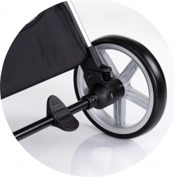 - Praktyczne detale: duży kosz, pokrowiec na nóżki, torba do przewijania, pasek bezpieczeństwa