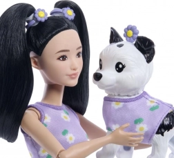 Ten uroczy zestaw BARBIE z pieskiem to perfekcyjne połączenie mody i wyobraźni. Lalka w lawendowym, kwiecistym stroju i jej pupil w pasującej kamizelce są gotowi na codzienne przygody. Dzięki bogatemu zestawowi akcesoriów dzieci mogą tworzyć nowe historie i rozwijać swoją kreatywność.