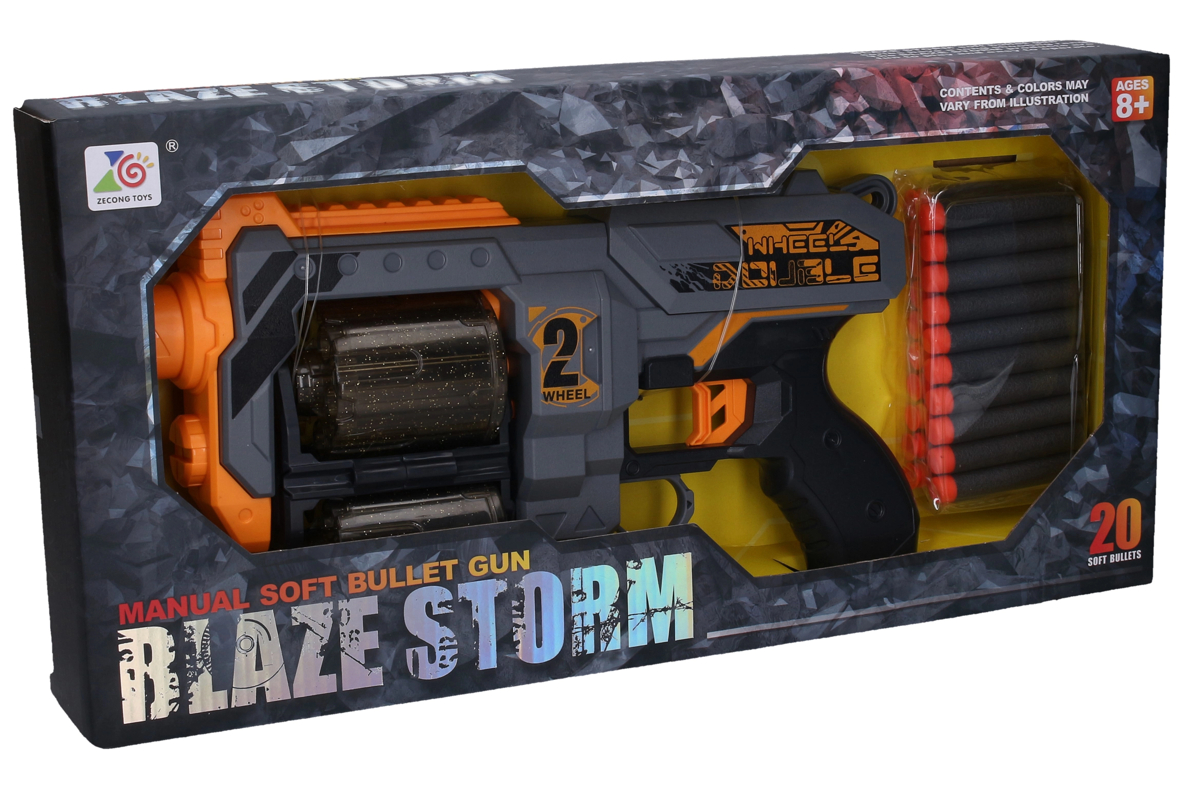 Zabawny i bezpieczny pistolet akcyjny Wheel Double dla dzieci oferuje dynamiczne strzelanie piankowymi nabojami. W zestawie znajduje się łącznie 20 nabojów, w tym warianty z przyssawką do celowanej zabawy. Dzięki prostemu sterowaniu idealnie nadaje się do zabawy w domu i na zewnątrz. Wymiary broni to 32,5 × 19 × 6,3 cm, a w komplecie jest obrazkowa instrukcja. Bezpieczna piankowa amunicja, łatwa obsługa i opakowanie gotowe do zabawy czynią z niego świetny wybór dla małych miłośników gier akcyjnych.