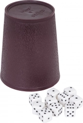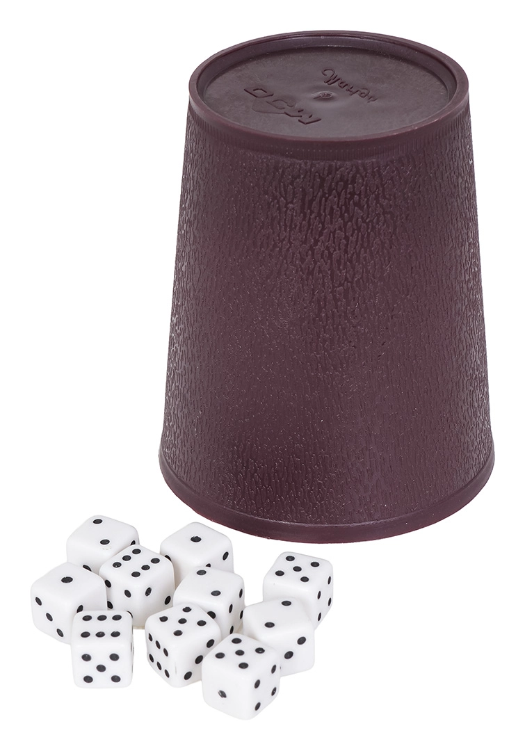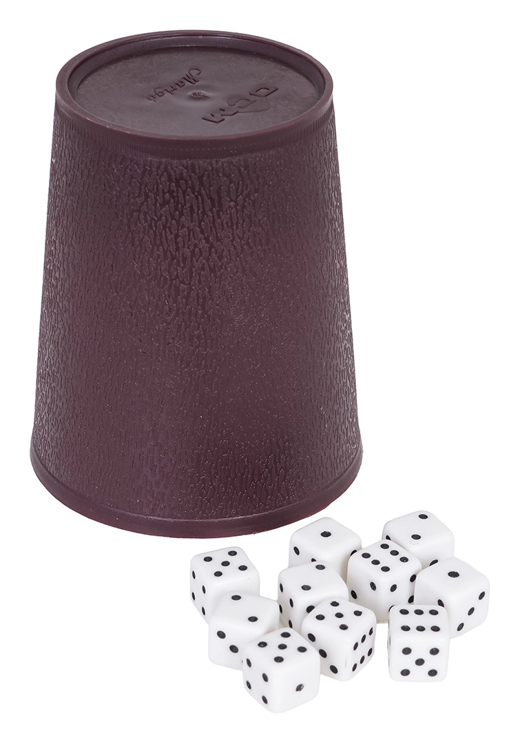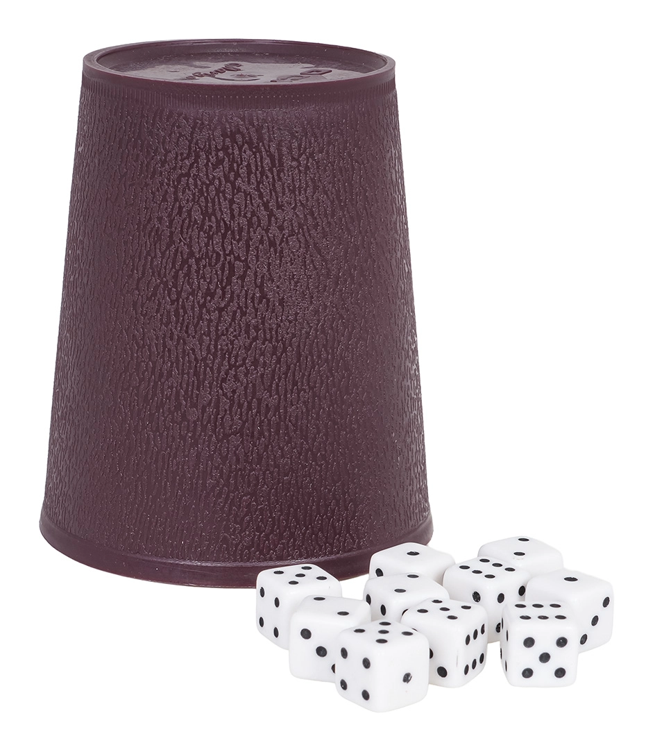 Ten kompletny zestaw do kości oferuje klasyczną rozrywkę stołową w praktycznym wydaniu. Teksturowany kubek dla pewnego chwytu i 10 wytrzymałych sześciennych kości świetnie sprawdzą się w popularnych grach w domu, w podróży i podczas spotkań z przyjaciółmi. Gra rozwija logiczne myślenie, liczenie oraz strategiczne podejmowanie decyzji.