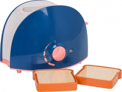 Wystarczy włożyć dwa dołączone tosty, przekręcić regulator i po chwili tosty wyskoczą. Podczas „pieczenia” usłyszysz odgłosy smażenia, a na przednim panelu miga pulsująca dioda. Toster wykonano z wysokiej jakości, wytrzymałego plastiku z dbałością o detale.