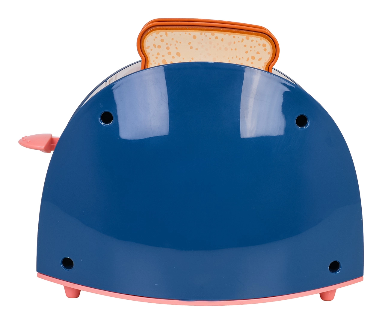 Dziecięcy toster z efektami świetlnymi i dźwiękowymi wprowadza realistyczną zabawę w kuchnię dla dzieci od 3 lat. Włóż 2 dołączone tosty, a po kilku sekundach same wyskoczą. Podczas „pieczenia” słychać autentyczne dźwięki, a z przodu pulsuje dioda świetlna. Zabawka jest wykonana z wysokiej jakości plastiku, ma obrotowy regulator i działa na baterie 2× AA (nie wchodzą w skład zestawu).
