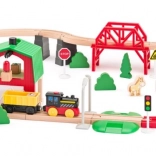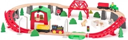 Zestaw wykonano z wysokiej jakości drewna i nadaje się do codziennej zabawy. Dzięki uniwersalnemu wzornictwu świetnie sprawdzi się jako prezent i można go łączyć z innymi drewnianymi kolejkami.
