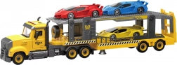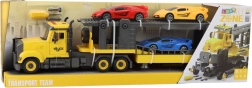 - 3 sportowe auta: do urozmaiconej zabawy samodzielnie i na platformie lawety.
