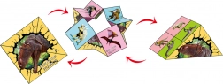 - Interaktywne układanie – płynne przekładanie i obracanie kostek odsłania różne motywy dinozaurów.