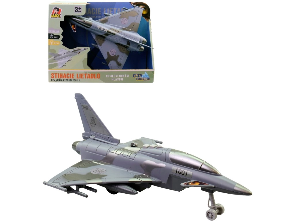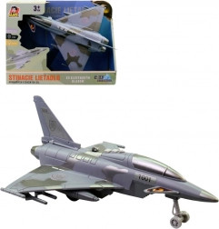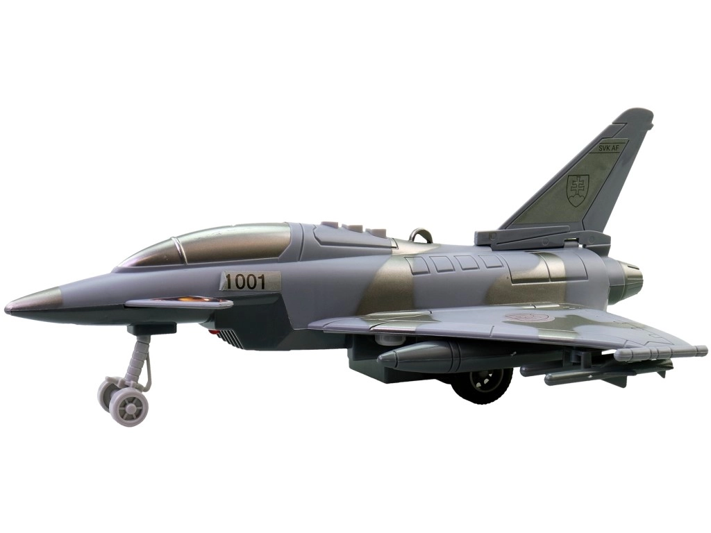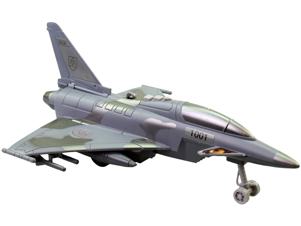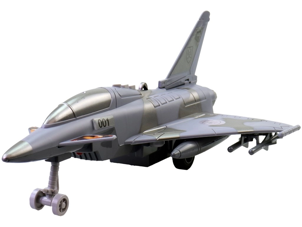 Ten realistycznie wykonany myśliwiec ucieszy wszystkich małych miłośników lotnictwa. Wystarczy go popchnąć, a dzięki napędowi ciernemu ruszy do przodu, podczas gdy światła LED i autentyczne dźwięki podkreślą atmosferę ekscytującej zabawy. Stabilne podwozie z swobodnie obracającymi się kółkami zapewnia płynny ruch po podłodze.