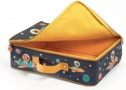 Dziecięca tekstylna walizeczka DJECO z delikatnym, kolorowym kosmicznym wzorem jest idealna na wyjazdy, weekendy u dziadków oraz do codziennego noszenia drobiazgów. Mocne płótno i wodoodporne wykończenie chronią zawartość, a przemyślany układ wewnętrzny utrzymuje wszystko na swoim miejscu.